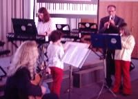 Und dies hier sind die Anfänge "meines" Ensembles, bestehend aus drei Flöten + einem Keyboard und einer Gitarre. Diese Aufnahme stammt aus dem Sommer 2002, ist also noch gar nicht so lange her... und ich hätte mir damals nicht träumen lassen, wie sich die ganze Sache entwickeln würde.