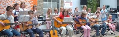 Hier sind die kleinen (und großen) Keyboarder zu sehen, nach dem Vorspielen bekam jedes Kind seine verdiente Urkunde. Vorne in der Mitte mit den gelben Hosen übrigens mein Sohnemann Stefan, zu dieser Zeit war er noch Kindergartenkind.